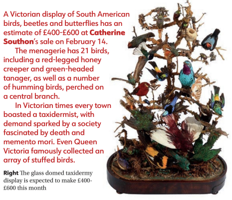 This fantastic Victorian taxidermy will not only go up for sale in our Antiques and Collectables Valentine's Day Auction at Farleigh Golf Course, but it has also been mentioned in the Antique Collecting Magazine February 2024, featured on page 54.