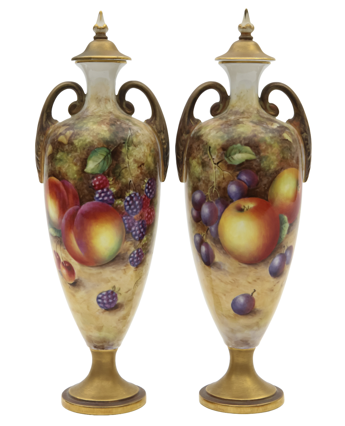 As mentioned, the quality of decoration and the shape of the item are key. Blush ivory pieces from the late 19th century are desirable, as are examples depicting painted fruit still life. These pieces are often signed, and porcelain decorated by notable Royal Worcester artists will achieve higher prices. Names to remember are Richard Seabright (one of the greatest still life painters), Harry Stinton (known for painting Highland Cattle), and Charles Baldwyn (who depicted birds and wildlife scenes). Lot 288, a group of five plates, decorated by Richard Seabright, sold for £950.