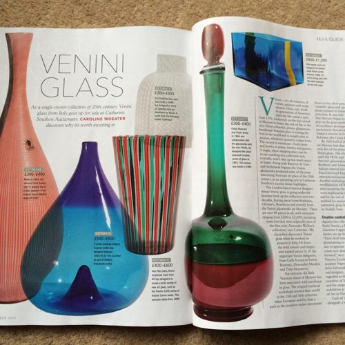 Featured in the press – the Venini glass collection with a special feature in Homes & Antiques and the Richard Channing Collection of Decorative Arts.