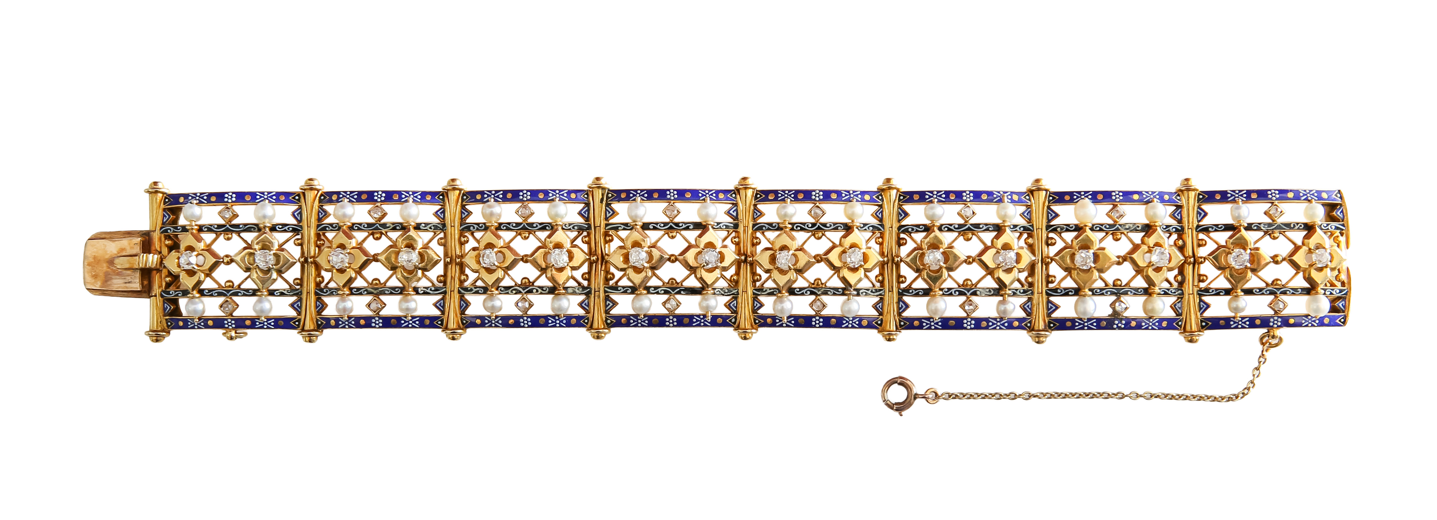 Lot 240 - a Carlo Giuliano Renaissance Revival enamel and pearl bracelet
